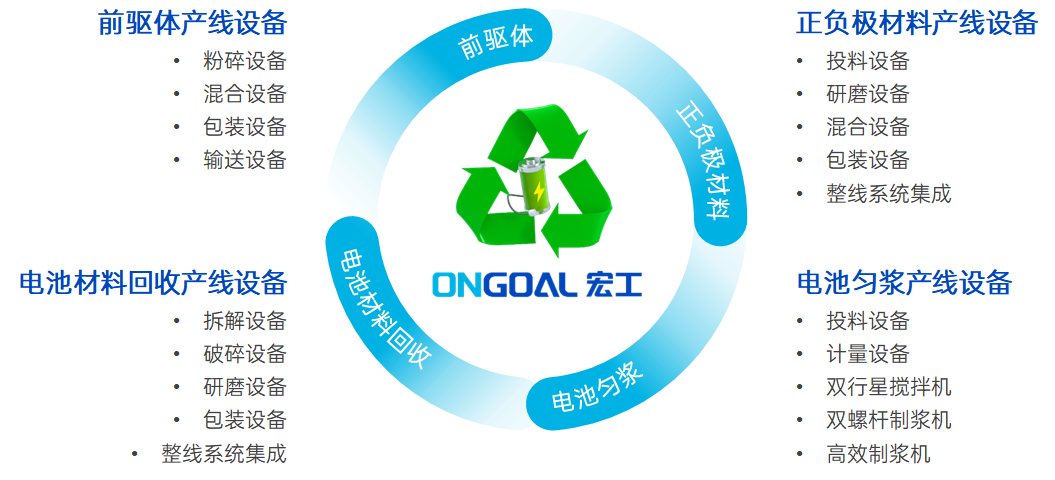 隨著電池回收市場的持續增長,自動化設備與解決方案在提高產能和效率方面的重要性日益明顯。作為電池產業鏈上的一員,宏工科技不斷進行全面深度的布局,從電池勻漿、正負極材料,到動力電池回收,賦能綠色、清潔、可持續經濟發展。